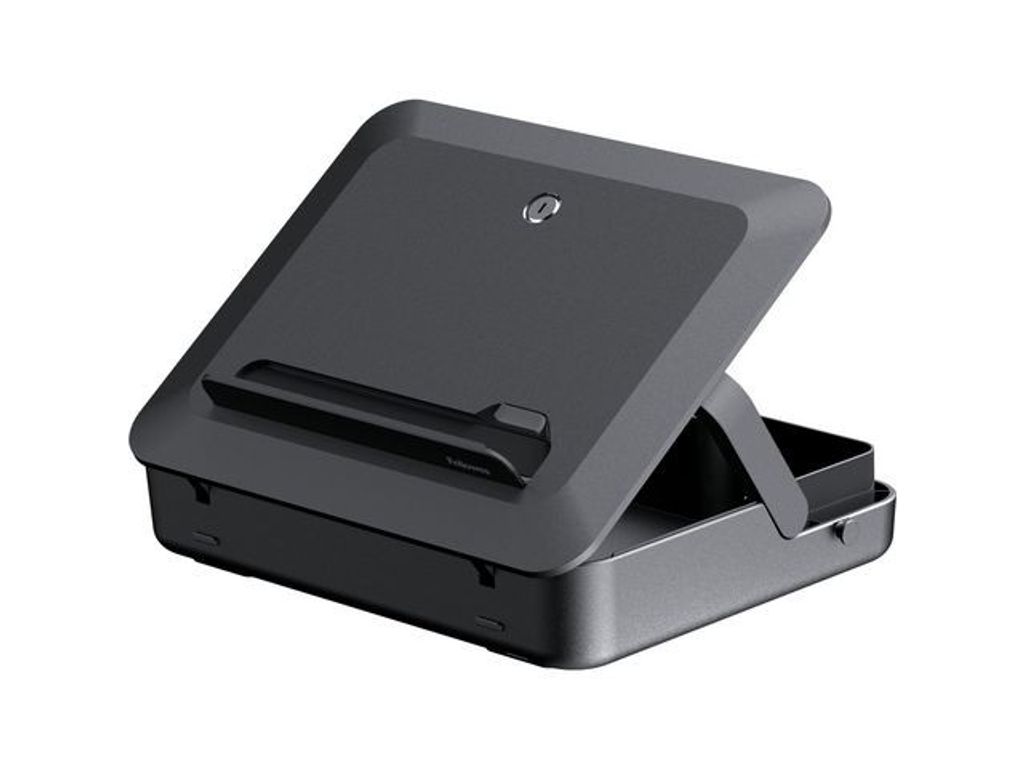 En 2 i 1 väska med laptopstativ. 100 % återvinningsbar. 2 i 1-design som inkluderar ett förvarings-/bärväska och laptopstativ i ett. - 5 höjdjusteringar för ergonomisk visningskomfort för bärbar dator. - Bärbar design som är lätt att ställa in, justera och förvara – perfekt för hybridarbete. - Inkluderar ett inbyggt handtag och valfri bärrem. - Modern och enkel designestetik tillgänglig i svart och vitt färgalternativ. - Tillverkad av material som är 100 % återvinningsbara och tillverkade för att hålla med utökad 5-års begränsad garanti - Mått: 38,7 x 8,7 x 29,8 cm - Vikt: 1,7 kg