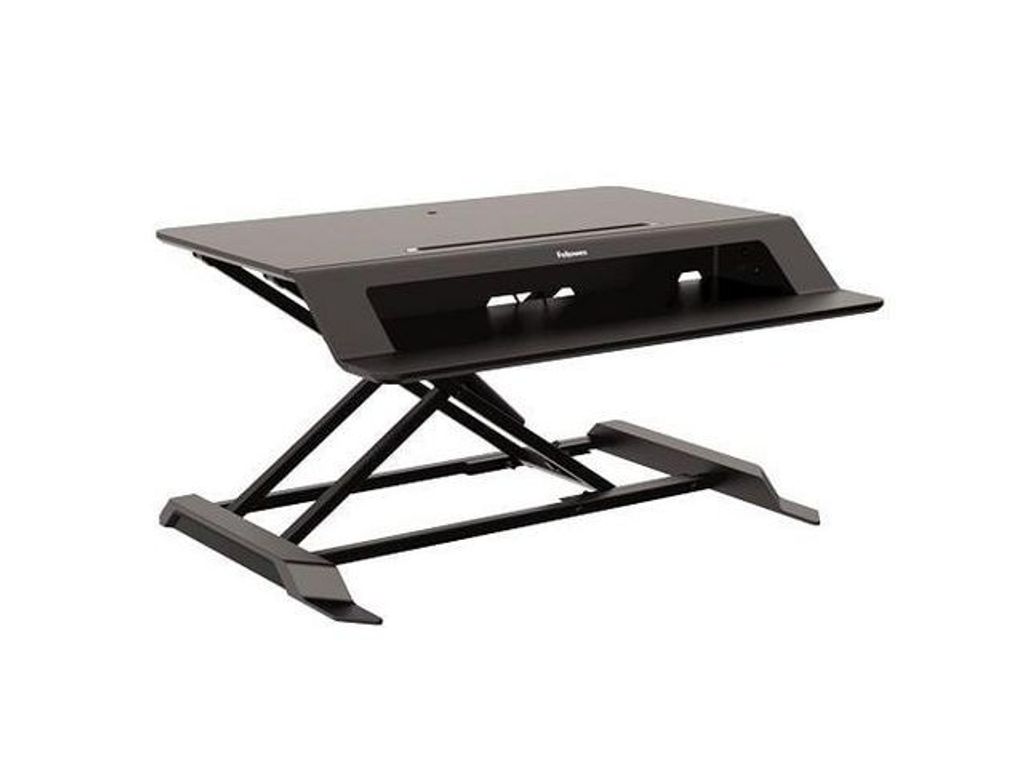 Förvandlar ditt konventionella skrivbord till en dynamisk sittarbetsplats och ger rörelse till din arbetsdag. Enkel övergång från sittande till stående tack vare den enkla gasfjäderhöjdinställningen så att du regelbundet kan ändra din arbetsställning. Lotus LT-bordet med sin stora arbetsyta i två nivåer är lämpligt för en flexibel uppsättning, eftersom det erbjuder plats för upp till två bildskärmar eller en bildskärm och en bärbar dator samt tillräckligt med utrymme. för mus och tangentbord. Denna stående skrivbord erbjuder tillräckligt med utrymme och förvaringsutrymme för mobiltelefon och andra tillbehör. Levereras helt monterad – inga komplicerade monteringsanvisningar, ingen montering krävs – packa bara upp och börja använda. - Mått: 60,96 x 80,01 x 11,11 cm - Vikt: 14.74 Kg