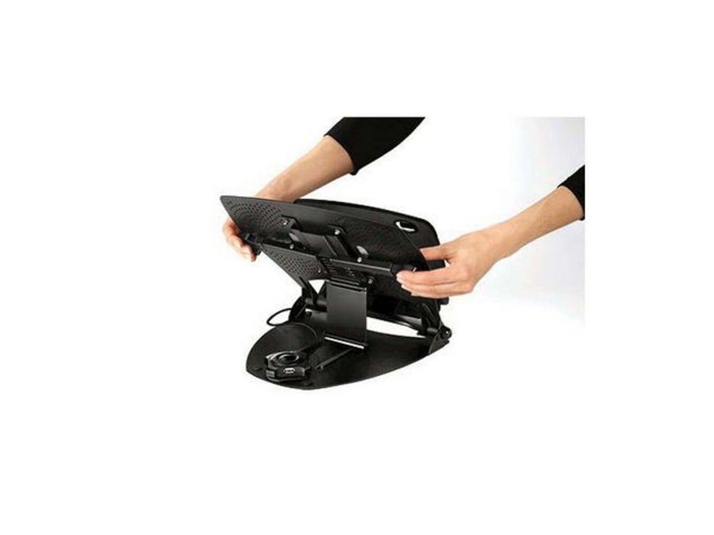 Placera din bärbara dator på bekväm höjd för att förhindra belastning på nacke och rygg. Ett stativ för bärbar dator vilket ger enheten en bekväm visningsnivå så att du kan undvika värk och smärta under arbetstid. - 9 lätta att justera höjdinställningar för att säkerställa att du hittar den perfekta positionen - Har 4 USB 2.0-portar som gör det enkelt att hålla kontakten med dina favoritenheter - Visa dokument enkelt och bekvämt med den inbyggda dokumenthållaren - Stabil metallram med gummifötter och ytstöd och skyddar din bärbara dator från att halka - Klarar bärbara datorer upp till 17' i storlek och 6,8 kg i vikt - Ackrediterad enligt BS EN ISO 9241 och certifierad som 'Ergonomically Excellent' av FIRA international, en oberoende Ergonomisk Accreditör - - Mått: 762,00 x 308,00 x 338,00 mm