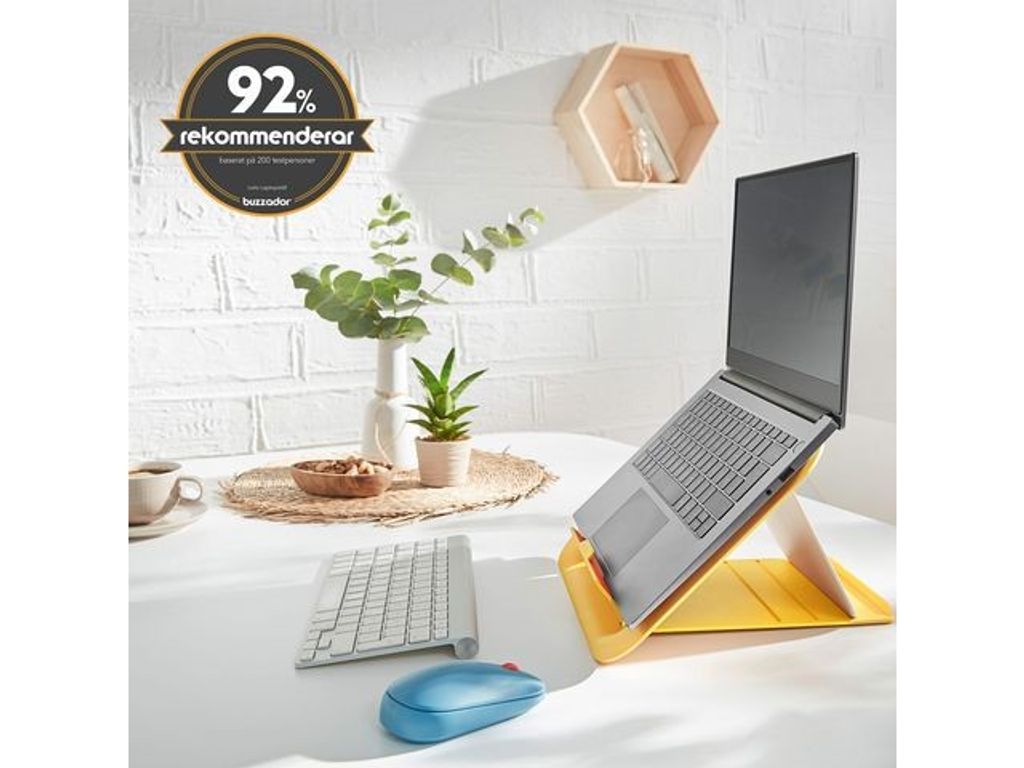 Ergonomiskt laptopställ för maximl komfort. Lätt att justera till rätt höjd. Modern och minimalistisk design. Leitz Ergo Cozy Laptopstativ höjer skärmen på din bärbara dator för att ge dig en bekvämare visningsvinkel och förbättra din hållning. Med hjälp av ett laptopstativ kommer du också att främja luftflödet under datorn, hålla batteriet och andra komponenter svala för att upprätthålla höga prestandanivåer. Med en minimalistisk design och matta färger bidrar laptopstället till en positiv arbetsmiljö, samtidigt som det gynnar fysisk hälsa och välbefinnande. Kombinera med andra Leitz Ergo-produkter för en inbjudande och flexibel arbetsyta. - Ergonomiskt designat laptopstativ för att maxmimera bekvämligheten på din arbetsplats - Passar för både sittande och stående arbete, förbättrar din hållning och ditt välmående - Justera höjden för att få din laptopskärm i perfekt position för dig - Testat och rekommenderat av det tyska IGR-institutet för hälsa och ergonomi, enligt DIN 26800 EN ISO 15537 - Laptopstativet håller batteriet och andra komponenter svala genom att främja luftflödet - Snabbt och enkelt att höjdanpassa med 4 olika höjder att välja mellan - Kompakt fotavtrycket för att passa på skrivbordet - Ihopfälbar för enkel förvaring när den inte används - Gummielement och en integrerad hake gör att datorn står stabilt och säkert - Passar laptops från 13' till 17' - Produkten bör användas med ett externt tangentbord och mus (säljs separat)