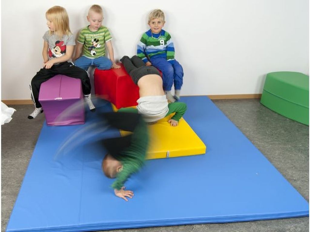 Stor fallmatta för lek och klättervägg. Av kraftigt galon. Mjuk och säker för barnen. - Mått: L179 x B179 x H5cm.