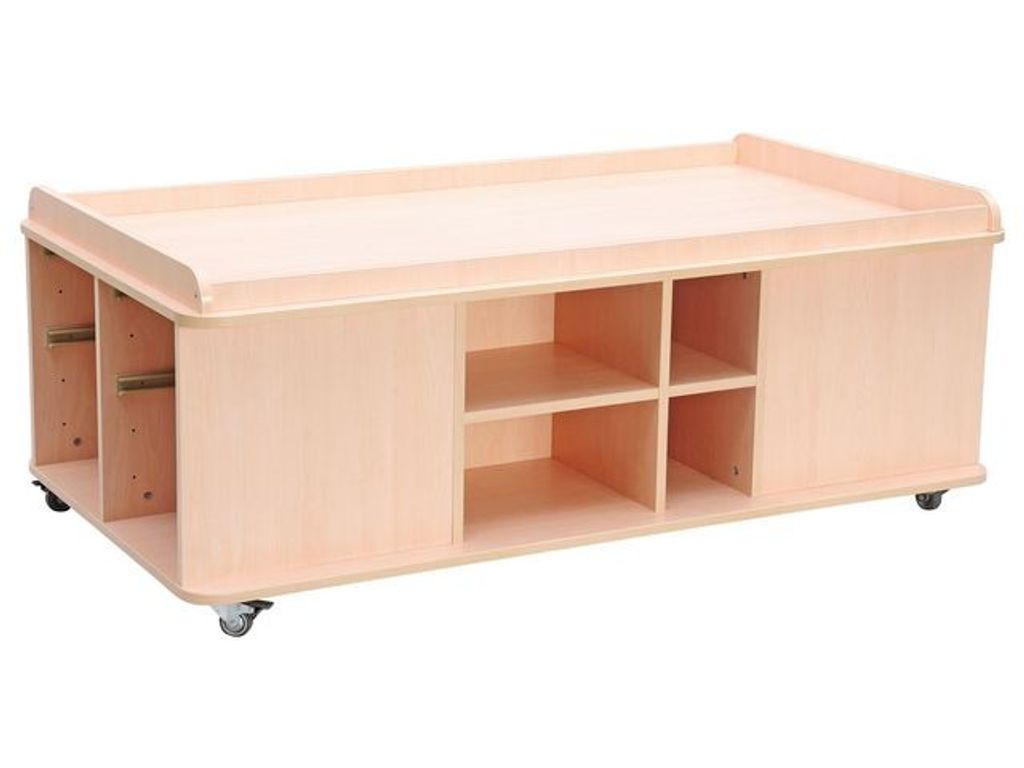 Stort lekbord med möjlighet till många aktiviteter. Kan fyllas med torrsand på ovansidan. Lekmatta Stad och Djurpark går att lägga på lekbordet. Gott om förvaringsmöjligheter med 4 förvaringfack vid varje sida, samt 8 st utdragbara, höga förvaringsbackar som ingår. - Kraftiga hjul med lås. - Kraftig konstruktion av björkmelamin. - Med 4 förvaringfack vid varje sida - Inkl. 8 utdragbara förvaringsbackar art nr 8961161 - Mått (BxHxD): 146 ,6 x 49 x 81 cm - Mått 4 mindre fack (BxHxD): 17 x 190 x 34cm - Mått 4 större fack (BxHxD): 35,5 x 19 x 34 cm - Levereras färdigmonterad