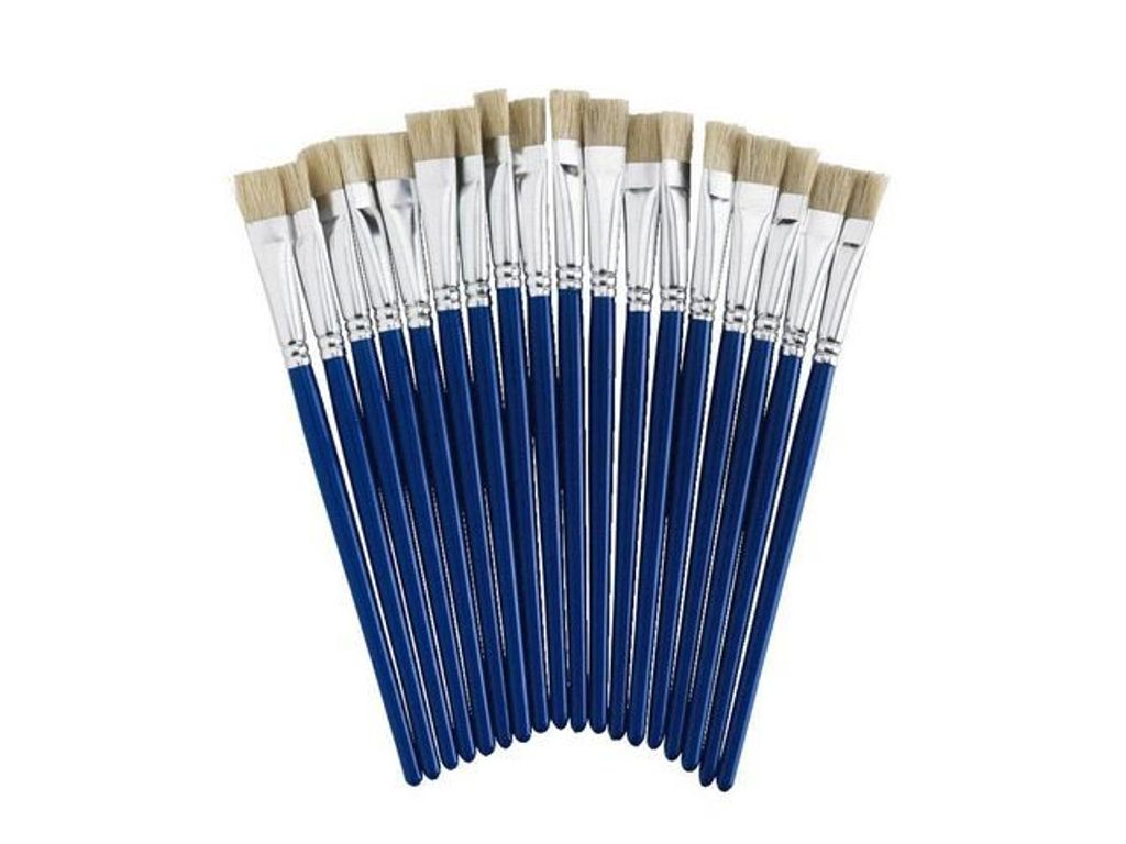 Flat pensel av svinborst med lackerat skaft. Passar perfekt vid paper mache-skapande. - Antal: 18/FP - Form: Flata - Storlek: 12 - Material: FSC -certifierat behandlat trä, aluminium och borst