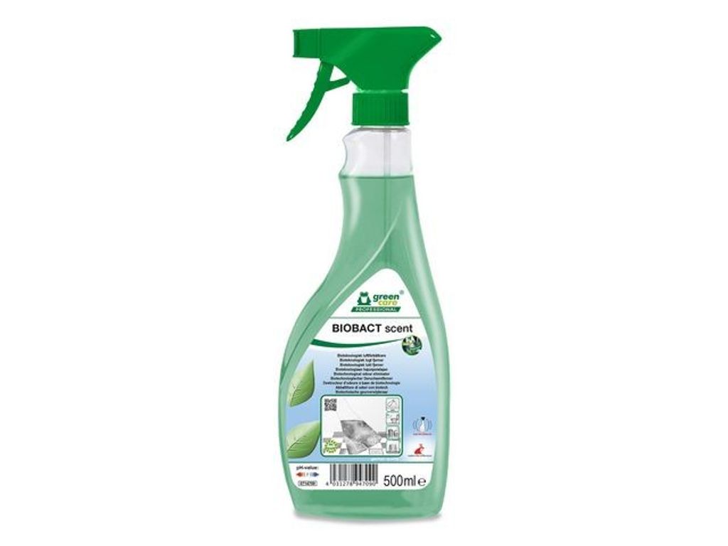 Bioteknologisk luktavlägsnare för ytor. I stället för att bara dölja dålig lukt bryter Biobact scent effektivt ned organiska substanser så som urin och matrester som är grundorsaken till en illaluktande omgivning. Eferlämnar en behaglig rumsdoft. Tack vare långvarig mikrobiell akivitet bekämpar Biobact scent dålig lukt. Vid regelbunden användning förhindrar det även att det byggs upp på nytt. Eftersom produkten är helt fri från skadliga ingredienser är det en materialvänlig luktförbättrare och har därigenom ett mångsidigt användningsområde (t.ex. sanitet, äldreboende, restauranger, hotell mm). Passar idealiskt för alla vattentåliga golv, områden runt toaletter, urinoarer, badkar, avlopp men även för textlier, mattor, möbler och övriga ytor med smuts som orsakar lukt. - Gjort av 100% naturliga mikroorganismer - Flaska gjord av 100% återvunnen plast - pH-värde: 6,8 - Lukt: Parfymerad - Utseende: Ljusgrön vätska