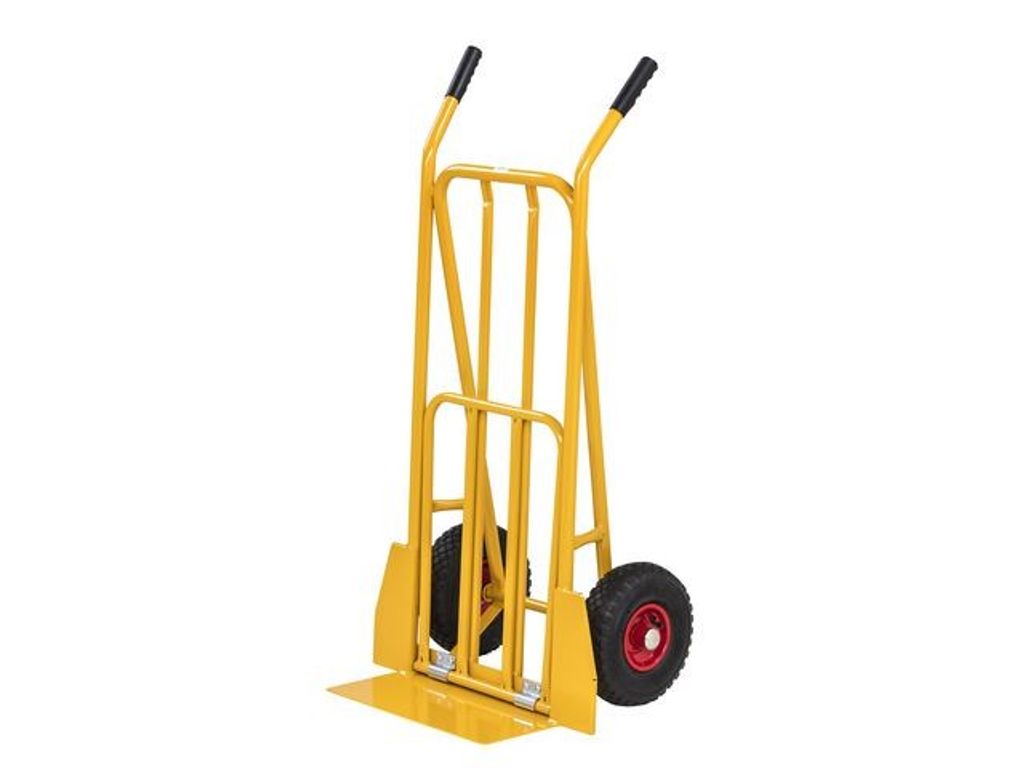 Praktiskt och lättmanövrerad säckkärra med rejäla luftgummihjul. Klassisk robust kärra med rejäla 260mm luftgummihjul som gör den flexibel i sina användningsområden. Med fällbart lastplan. Pulverlackerad. - Belastning: 250kg - Storlek: 780 x 555 x 1110mm (LxBxH) - Storlek lastplan: 360 x 480mm - Litet lastplan: 415 x 175mm - Hjultyp: 2 fasta luftgummihjul 260 x 85mm - Bromsade hjul: Nej - Vagnens vikt: 13kg