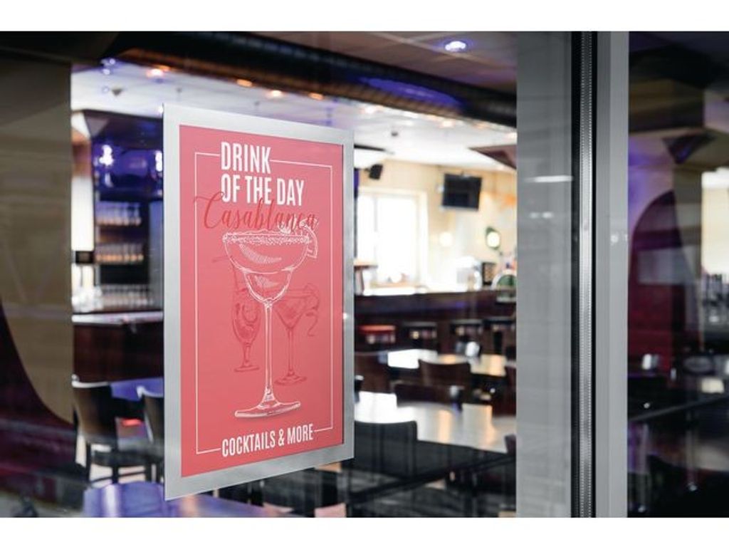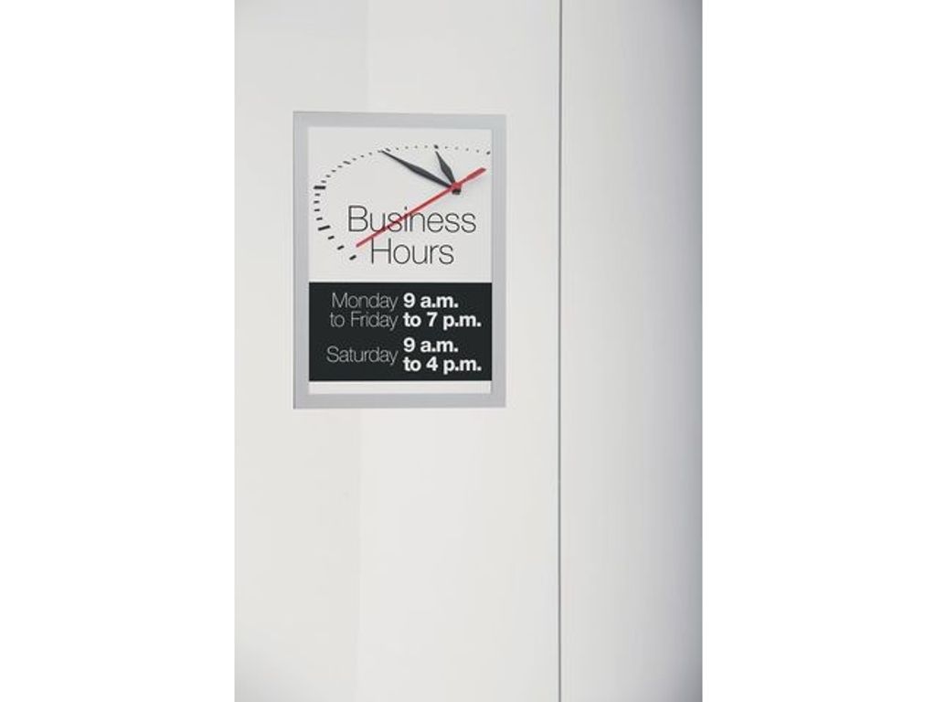 Inforam som fäster statiskt på glasrutor. För olika typer av information i A3 format som exponeras för solljus. UV-stabil och värmetålig. Använd DURAFRAME® SUN inforamar för att visa och presentera kampanjerbjudanden, öppettider, reklam mm på ett proffsigt sätt i skyltfönster som utsätts för solljus. Enkelt att sätta i eller skifta budskap genom att lyfta framsidan med magnetstängning. Lätt att sätta upp - spraya bara lite vatten utblandat med en droppe diskmedel på baksidan så fäster ramen statiskt på glasytan. Snyggare än tejp! Kan användas flera gånger och lämnar inga spår efter sig. Ramen är läsbar från två håll och du kan visa olika budskap på de båda sidorna. Tillverkad av PVC. - UV-resistent skyltram - Värmetålig upp till 70 °C - Ett professionellt och enkelt sätt att visa budskap - Fäst den självhäftande baksidan på någon slät, fast yta - Flyttbara på glas/fönster - Inga kladdiga rester på ytor - För papper i A3-format - Använd i stående eller liggande format - Ramens storlek: 323 x 446 mm - Färg: Silver - Antal: 2