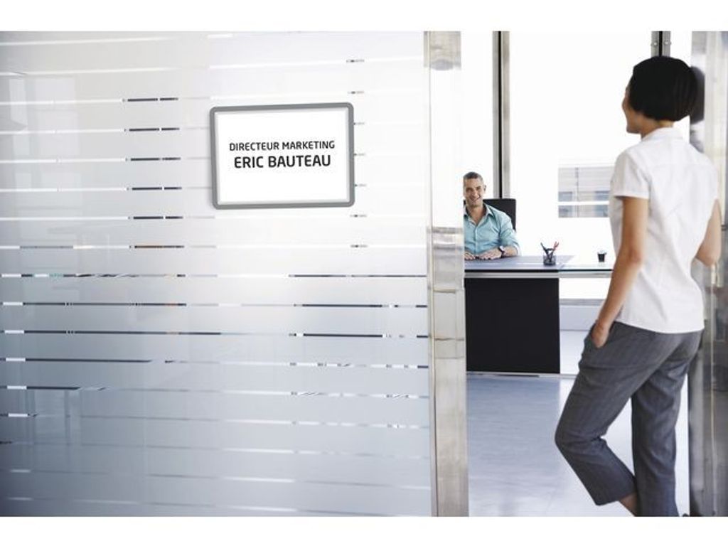 Magneto A4 själhäftande flyttbar ram med magnetisk stängning. Rama in och visa med unik design. Magneto är definitivt iögonfallande med sina runda hörn och rastrerade ram. Tack vare sin funktionella öppning så sätter du i eller tar ur dokumenten på ett ögonblick. Dubbelsidig fönstervisning tack vare fram- och baktryckta ramar. Idealisk för att förbättra skyltar, instruktioner, öppettider, kampanjerbjudanden, priser, reklam, menyer etc. - Material: PP och PVC