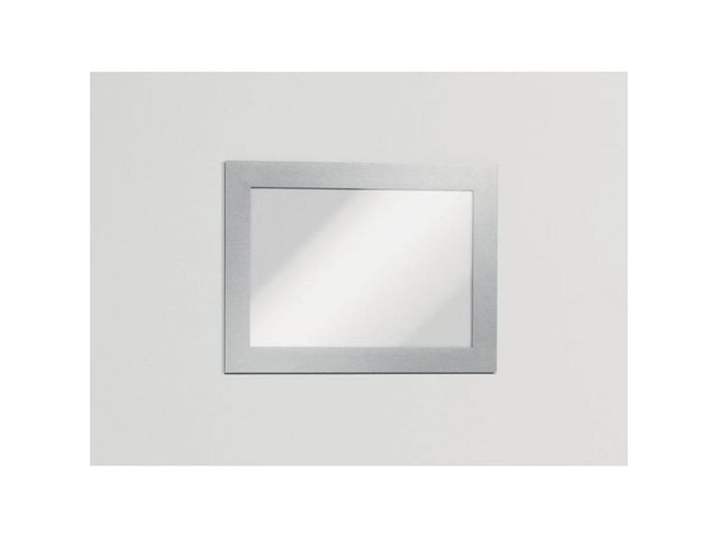 Lättanvänd, självhäftande inforam för att visa olika typer av information på ett stilfullt sätt. För dokument i A5 format. Använd självhäftande DURAFRAME® inforamar för att visa och presentera kampanjerbjudanden, öppettider, skyltar och annan tillfällig eller mer varaktig information på ett professionellt sätt. Enkelt att sätta i eller skifta budskap genom att lyfta framsidan med magnetstängning. Lätt att sätta upp - utan verktyg eller andra tillbehör - på fasta och släta ytor. Snyggare och enklare hantering än t ex tejp, häftstift eller häftklammer. Ramen ser likadan ut på fram och baksidan, vilket är bra när den placeras på glasrutor för dubbelsidigt budskap. Ramen går att ta bort från glasrutor. Undvik att fästa självhäftande DURAFRAME® på målade, belagda eller laminerade ytor samt underlag som tapeter, porösa material och non-stick ytor då ytorna kan skadas om ramen tas bort. Tillverkad av PVC. - Ett professionellt och enkelt sätt att visa budskap - Dra av skyddspapperet och placera den självhäftande baksidan på släta, fasta ytor som dörrar, glasrutor och arkivskåp. - Går att förflytta på glas/fönster - När du fäster den på en glasyta kan budskapet läsas från båda håll - Med den magnetiska tätningen ser du till att budskapet sitter fast och innehållet uppdaterar du snabbt och enkelt - Utmärkt för användning på bland annat skolor, banker, hotell och i receptioner. - Mått: A5: 15 x 20,6 cm - Antal: 2 - Färg: silver