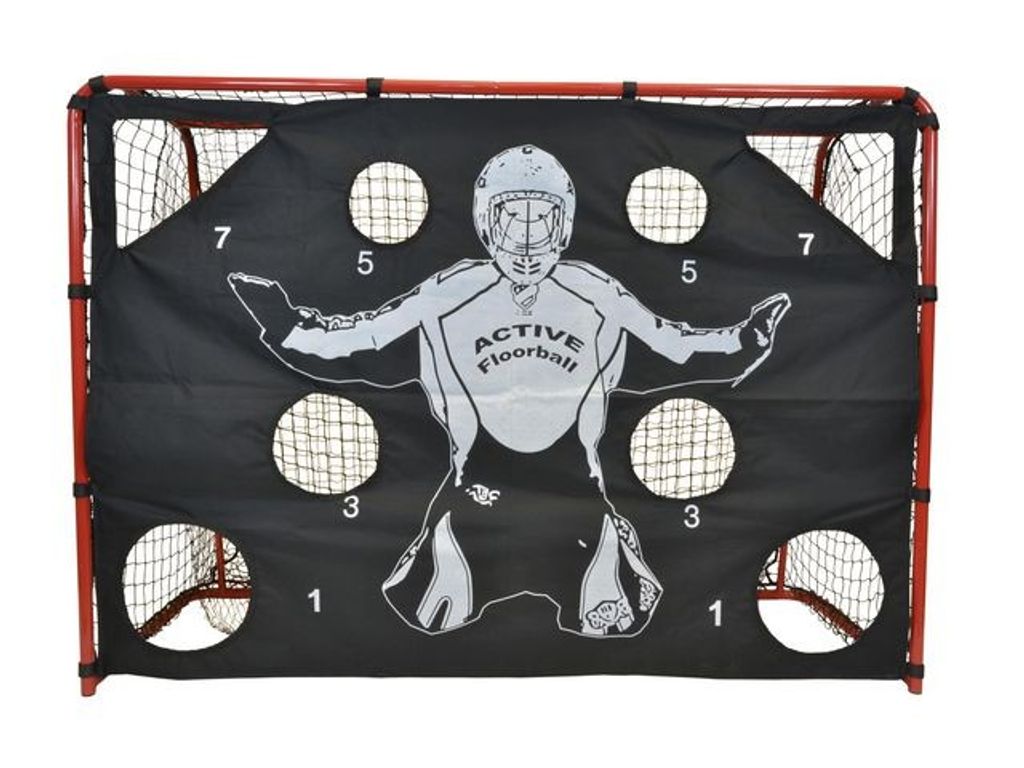 Beskrivning av Målvaktsduk Målvaktsduk, 115 x 160 cm, i kraftig canvasväv med kardborrefästen. Strategiska hål för prickskytte. Passar till skolmatchmål 9897191.