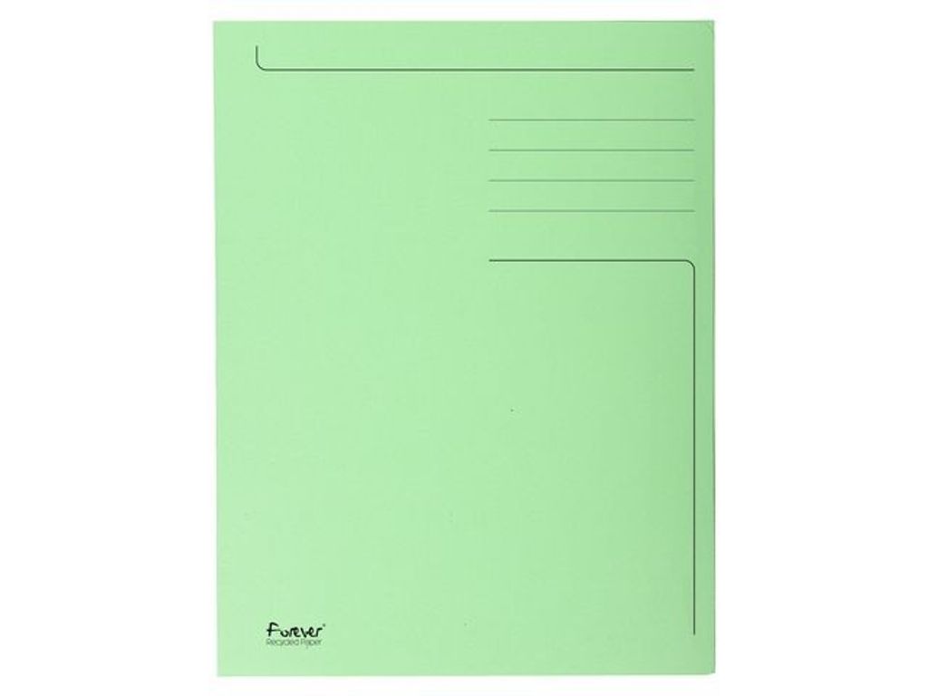 Mapp med 3 klaffar av återvunnen kartong på 280g från Exacomptas serie Forever®. En 3-klaffs kartongmapp som stabilt och enkelt håller dina dokument och andra papper på plats. Passar till A4-format, mått: 24x32cm. 3 flikar håller alla dina viktiga dokument säkra. Förtryckta rader på framsidan gör att du lätt kan identifiera innehållet i mappen. Tillverkad i Frankrike av 100 % återvunnen kartong. - Format: A4 - Tillverkat av 100% återvunnet papper - Färg: ljusgrön - Tillverkad i Frankrike - Blue Angel-certifierad