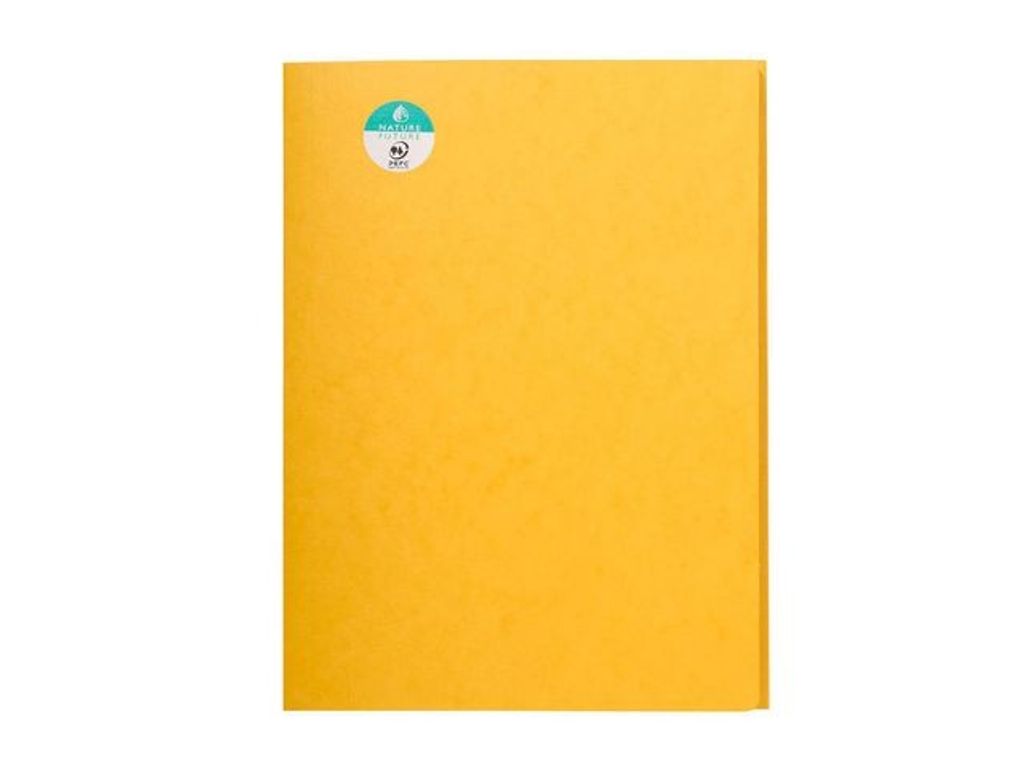 Arkivera på enklast möjliga sätt med denna Exacompta Nature Future® 3-klaffmapp utan gummiband. Med kapacitet på upp till 200 ark A4-papper är Exacompta Nature Future® med 3 klaffar och utan gummiband ett utmärkt val för snabbast möjliga arkivering. Med 3 flikar på insidan förvaras dina dokument säkert. Eftersom inga gummiband används blir det enklare att lägga in och ta ur dokument. Den här mappen är tillverkad av hållbart producerad FSC®-certifierad hårdglaserad marmorerad presspan och är en högkvalitativ, miljövänligare och hållbar lösning för dina arkiveringsbehov. Den här produkten finns tillgänglig i en livfull gul färg och kommer säkerligen att liva upp din dag. - Förvaringskapacitet: Rymmer 200 A4-papper - 3 flikar på insidan förvaras innehållet säkert - Utan gummiband för snabbare arkivering - Tåliga och miljövänligarea - Material: 400 g/m² FSC®-certifierad hårdglaserad marmorerad presspan - Mått: 240 x 320 mm - Tjocklek: 0,5 mm - Färg: Gul - Certifiering: ISO 9706