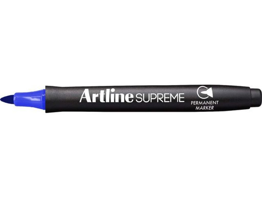 Beskrivning av Märkpenna ARTLINE Supreme rund 1mm blå Permanent märkpenna med 1 mm skrivbredd och rund spets i ergonomisk design. Snabbtorkande permanent bläck. - Permanent bläck - Med huv - Rund spets - Linjebredd: 1 mm - Textfärg: Blå