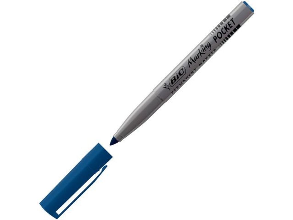 Den permanenta märkpennan BIC® Marking™ Pocket 1445 skriver med väder- och ljusbeständigt bläck på de flesta ytor. Den permanenta märkpennan BIC® Marking™ Pocket 1445 har bläck som ger ljusa och klara färger. Den har fickstorlek som gör den enkel att bära med sig. Det permanenta bläcket kan användas på de flesta ytor, t.ex. papper, glas, plast och textilier. Pennan har en medellång spets som gör det enkelt att skriva med olika stilar. Den är PVC-fri och har en praktisk plastpennkropp. Bläcket har svag lukt för en behagligare upplevelse. - Permanent bläck - Med huv - Rund spets - Linjebredd: 1,1 mm - Textfärg: Blå