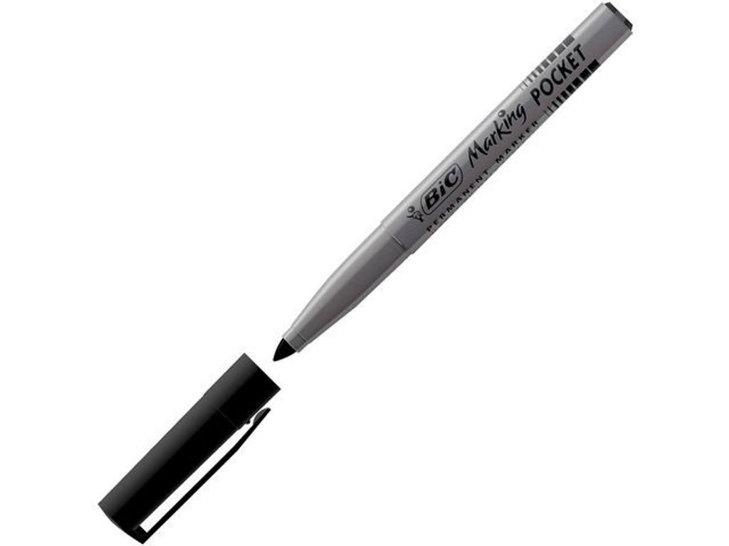 Den permanenta märkpennan BIC® Marking™ Pocket 1445 skriver med väder- och ljusbeständigt bläck på de flesta ytor. Den permanenta märkpennan BIC® Marking™ Pocket 1445 har bläck som ger ljusa och klara färger. Den har fickstorlek som gör den enkel att bära med sig. Det permanenta bläcket kan användas på de flesta ytor, t.ex. papper, glas, plast och textilier. Pennan har en medellång spets som gör det enkelt att skriva med olika stilar. Den är PVC-fri och har en praktisk plastpennkropp. Bläcket har svag lukt för en behagligare upplevelse. - Permanent bläck - Med huv - Rund spets - Linjebredd: 1,1 mm - Textfärg: Svart