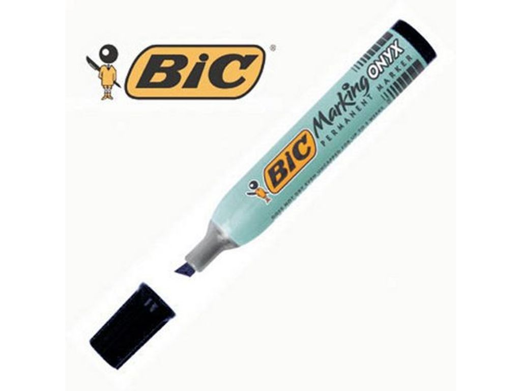 Den permanenta märkpennan Marking Onyx 1591 från BIC® är ett praktiskt och mångsidigt verktyg som kan användas på de flesta ytor. Den här permanenta märkpennan har en mejselformad spets så att du kan skriva med olika stilar. Pennan har en linjebredd på 3,5–5,5 mm och en metallkropp, vilket gör den till ett högkvalitativt och flexibelt verktyg. Den här praktiska märkpennan kan användas på de flesta ytor, från papper och plast på tyg och glas. Den kommer väl till pass i en mängd olika professionella miljöer. Märkpennan finns i svart och innehåller bläck med svag lukt, vilket ger dig en behagligare upplevelse. - Permanent märkpenna för privat och professionellt bruk - Spetstyp: Skuren spets - Ungefärlig linjebredd: 3,5–5,5 cm - Skaft i metall - Bläckfärg: Svart - Tid utan kork: 2 veckor - Xylen- och toluenfri