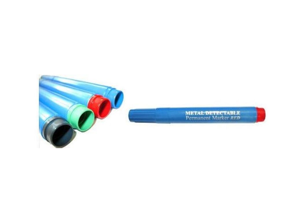 DectaSafe Detekterbar Permanent Märkpenna Blå, med runt tuschhuvud. Består av metalldetekterbar plast. Finns i 5 olika färger för att uppfylla färgkodning. Uppfyller BRC och HACCP kraven - Metalldetekterbar plast - Permanent bläck - Rund spets - Linjebredd: 2-3 mm - Textfärg: Blå