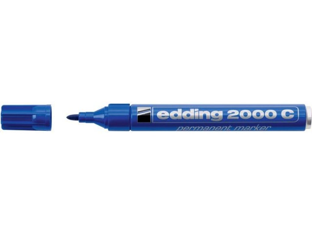 Den permanenta märkpennan Edding 2000 C är utformad för mångsidig användning och kan användas på nästan alla slags ytor. Den här permanenta märkpennan innehåller bläck som torkar snabbt och är smetfritt och vattenbeständigt, vilket hjälper dig att skriva tydligt och fläckfritt. Den är speciellt utformad för mångsidig användning och kan användas i flera olika sammanhang. Den permanenta märkpennan Edding 2000 C har en spets med 1,5 - 3 mm linjebredd och den passar utmärkt när du vill ha mer precision och noggrannhet. Det ger jämn skrift på nästan alla slags ytor, bland annat plast, metall, glas och trä. Märkpennan har en lätt design i aluminium, vilket gör den extremt bekväm och enkel att använda. - Permanent bläck - Med huv - Rund spets - Linjebredd: 1,5 - 3 mm - Textfärg: Blå