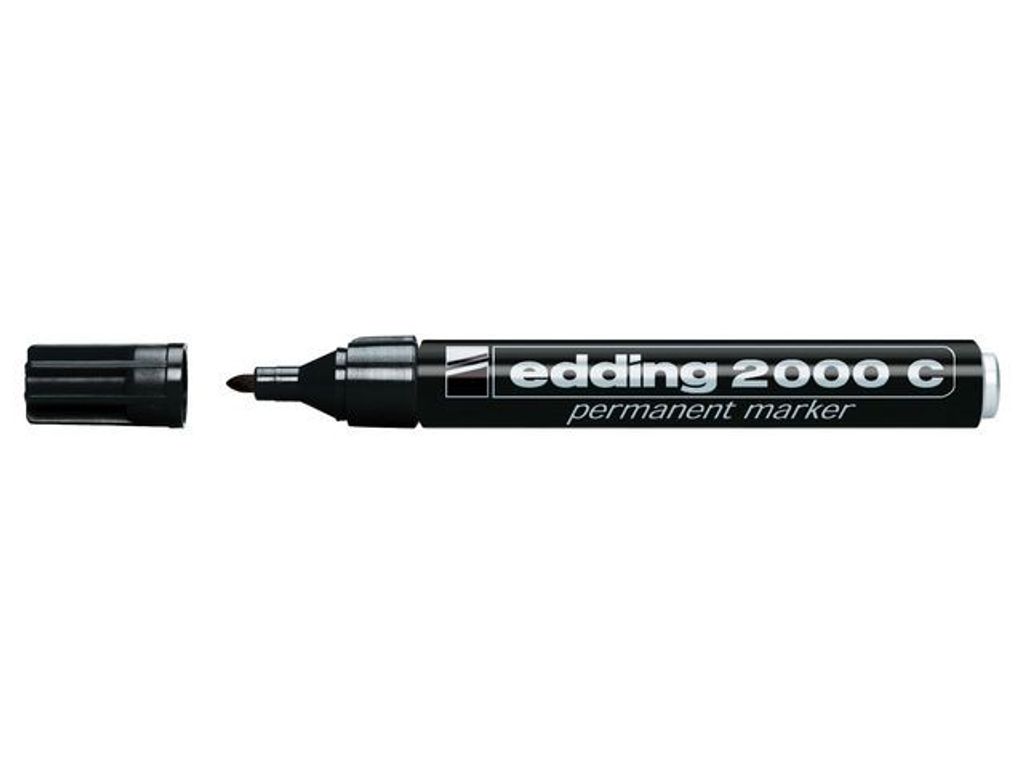 Den permanenta märkpennan Edding 2000 C är utformad för mångsidig användning och kan användas på nästan alla slags ytor. Den här permanenta märkpennan innehåller bläck som torkar snabbt och är smetfritt och vattenbeständigt, vilket hjälper dig att skriva tydligt och fläckfritt. Den är speciellt utformad för mångsidig användning och kan användas i flera olika sammanhang. Den permanenta märkpennan Edding 2000 C har en spets med 1,5 - 3 mm linjebredd och den passar utmärkt när du vill ha mer precision och noggrannhet. Det ger jämn skrift på nästan alla slags ytor, bland annat plast, metall, glas och trä. Märkpennan har en lätt design i aluminium, vilket gör den extremt bekväm och enkel att använda. - Permanent bläck - Med huv - Rund spets - Linjebredd: 1,5 - 3 mm - Textfärg: Svart