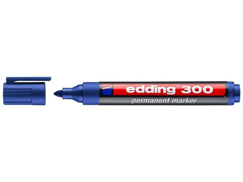Den permanenta märkpennan Edding 300 är utformad för mångsidig användning och kan användas på nästan alla slags ytor. Den här permanenta märkpennan innehåller bläck som torkar snabbt och är smetfritt och vattenbeständigt, vilket hjälper dig att skriva tydligt och fläckfritt. Den är speciellt utformad för mångsidig användning och kan användas i flera olika sammanhang. Den permanenta märkpennan Edding 300 har en spets med 1,5 - 3 mm linjebredd och den passar utmärkt när du vill ha mer precision och noggrannhet. Det ger jämn skrift på nästan alla slags ytor, bland annat plast, metall, glas och trä. Märkpennan har en lätt design, vilket gör den extremt bekväm och enkel att använda. Den levereras med kork och fickklämma. - Permanent bläck - Med huv - Rund spets - Linjebredd: 1,5 - 3 mm - Textfärg: Blå