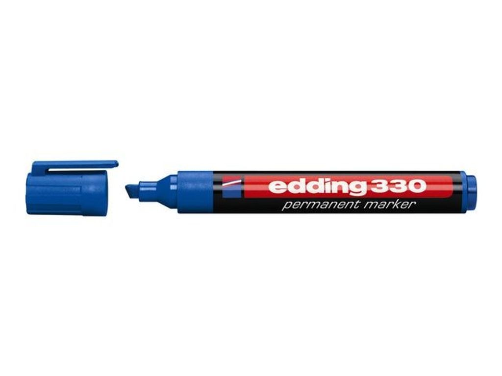 Den permanenta märkpennan Edding 330 är utformad för mångsidig användning och kan användas på nästan alla slags ytor. Den här permanenta märkpennan innehåller bläck som torkar snabbt och är smetfritt och vattenbeständigt, vilket hjälper dig att skriva tydligt och fläckfritt. Den är speciellt utformad för mångsidig användning och kan användas i flera olika sammanhang. Den permanenta märkpennan Edding 330 har en snedskuren spets som ger 1–5 mm linjebredd och den passar utmärkt när du vill ha fet och flödande text. Det ger jämn skrift på nästan alla slags ytor, bland annat plast, metall, glas och trä. Märkpennan har en lätt design, vilket gör den extremt bekväm och enkel att använda. Den levereras med kork och fickklämma, vilket gör den lätt att ta med sig. - Permanent bläck - Med huv - Snedskuren spets - Linjebredd: 1 - 5 mm - Textfärg: Blå