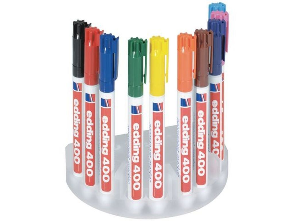 Den permanenta märkpennan Edding 400 är utformad för mångsidig användning och kan användas på nästan alla slags ytor. Den här permanenta märkpennan innehåller bläck som torkar snabbt och är smetfritt och vattenbeständigt, vilket hjälper dig att skriva tydligt och fläckfritt. Den är speciellt utformad för mångsidig användning och kan användas i flera olika sammanhang. Den permanenta märkpennan Edding 400 har en tunn spets som ger 1 mm linjebredd och den passar utmärkt när du vill ha mer precision och noggrannhet. Det ger jämn skrift på nästan alla slags ytor, bland annat plast, metall, glas och trä. Märkpennan är tunn och lätt, vilket gör den extremt bekväm och enkel att använda. Den levereras med kork och fickklämma. - Permanent bläck - Med huv - Rund spets - Linjebredd: 1 mm - Textfärg: Blandade