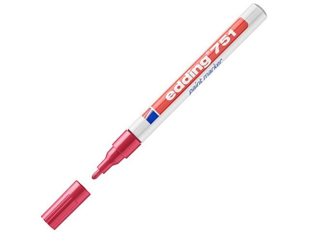 Märkpennan Edding 751 har en täckande lackfinish och ger ett jämnt resultat på många olika ytor. Den här märkpennan innehåller permanent pigmentbläck som tål vatten och slitage, vilket gör den perfekt när bläcket kommer att utsättas för vatten. Bläcket tål även temperaturer upp till 400 °C. Märkpennan Edding 751 har en tunn spets med 1 - 2 mm linjebredd och är lämplig för exakt och noggrann skrift. Den ger ett täckande resultat och har lång hållbarhet, särskilt på mjuka, porösa och mörka ytor. Märkpennan kan användas på många olika ytor, till exempel plast, metall, glas och trä. Det speciella bläcket innehåller varken xylen eller toluen, vilket innebär att märkpennan inte avger några starka lukter. Pennkroppen har en lätt design i aluminium, vilket gör det bekvämt och enkelt att skriva med märkpennan. - Permanent bläck - Med huv - Rund spets - Linjebredd: 1–2 mm - Textfärg: Röd