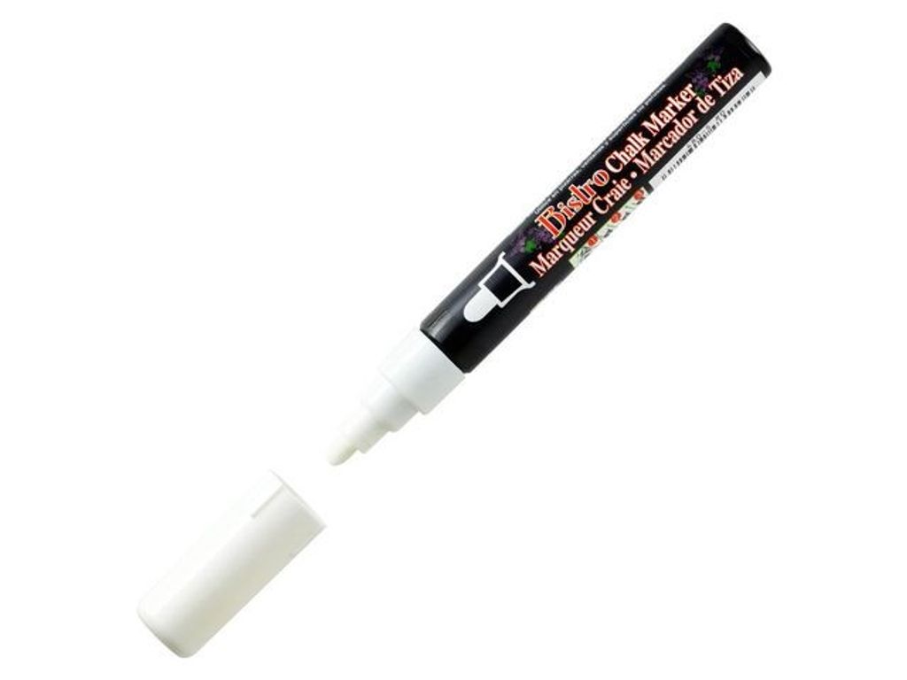 Marvy® Uchida griffelpennor är lämpliga för användning på ljusskyltar, glas och svarta tavlor och de levereras i fyra livfulla färger. Marvy® Uchida griffelpennor har ett vattenbaserat bläck som enkelt kan torkas bort med en fuktig trasa. Du kan skriva på svarta tavlor, whiteboardtavlor, glasfönster, speglar och andra ytor med dessa märkpennor. De kommer väl till pass på caféer, pubar och restauranger för att skriva menyn på svarta tavlor, skapa vackra konstverk på fönstren eller för att skriva ned anteckningar på whiteboardtavlor. - Icke permanent bläck - Med huv - Rund spets - Linjebredd: 3 mm - Textfärg: Vit