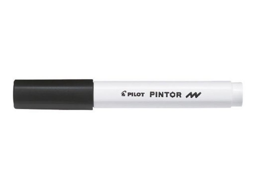Dekorera och ge en personliga prägel på dina prylar. PINTOR fäster på tyg, plast, glas, trä och metall. Ge din byrå, väska eller ditt porslin en personlig prägel. Dekorera med PINTOR. Den fäster på alla material och blir permanent på tyg och glas efter uppvärmning. Torkar snabbt och är både vatten- och ljustålig. - Permanent bläck - Med huv - Rund spets - Spetsbredd: 1,0 mm - Textfärg: Svart