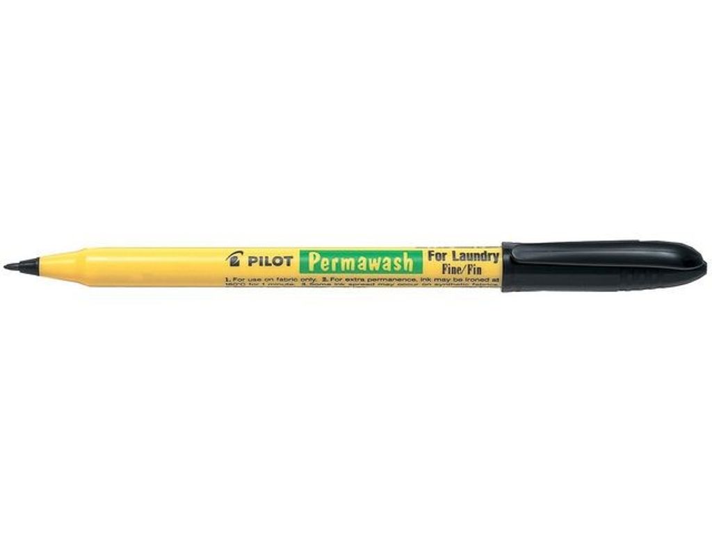Pilots Permawash är en tvättbeständig märkpenna som låter dig skriva på kläder utan att det kladdar. Pilots Permawash är en märkpenna som är idealisk om du vill skriva på tyg och annat material. Bläcket har hög tvättbeständighet vilket gör att du kan skriva på material som behöver tvättas regelbundet. Perfekt för att märka skolkläder. Dessutom torkar texten snabbt vilket eliminerar risken för att det du skrivit ska kladda. Den tunna spetsen ger en linje på 1,0 mm som är lämplig för uppgifter som kräver exakt och kontrollerad skrift. Märkpennan har en kork så att du kan ta den med dig och är försedd med en fickklämma för extra bekvämlighet. Märkpennan är tunn och lätt, vilket gör den extremt bekväm och enkel att använda. - Permanent märkpenna - Tunn kulspets: 1,0 mm linjebredd - Tvättbeständig - Snabbtorkande bläck som inte suddar så lätt - Idealisk om du vill skriva på tyg och annat material - Bekväm lättviktsdesign - Färg: svart