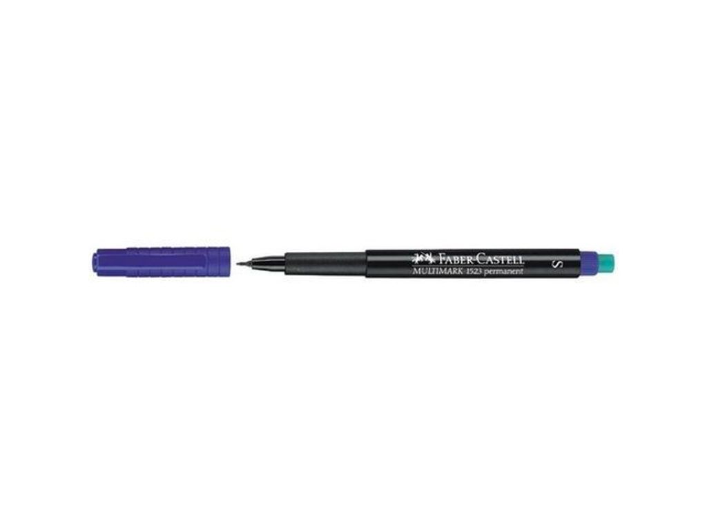 Den permanenta märkpennan Faber-Castell MULTIMARK är vattenfast och ljusbeständig, kan användas på de flesta ytor och levereras med ett unikt integrerat suddgummi. Faber-Castell MULTIMARK är en högkvalitativ permanent fiberspetspenna som har en exceptionellt lysande och djup färg. Den är utmärkt att använda på nästan alla ytor, t.ex. sten, trä, metall, glas och cd-skivor. Varje penna har ett integrerat suddgummi som effektivt tar bort märken. Skaftet och locket i polypropen skyddar bläcket från att torka ut och ser till att den håller länge. Eftersom den här märkpennan är tillverkad av polypropen har den även minimal miljöpåverkan efter användning. - Permanent bläck - Med huv - VF=vattenfast - Rund spets - Linjebredd: S -0,4mm - Textfärg: Blå - Färg pennkropp: Svart - Huv visar skrivfärg - Carbon-neutral product ClimatePartner 16467-2105-1001