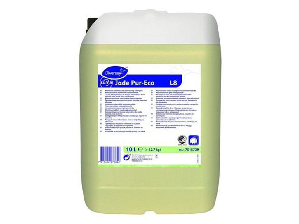 Koncentrerat lågalkaliskt maskindiskmedel som klarar av att rengöra vid alla vattenhårdheter. Suma Jade Pur-Eco L8 ger utmärkta diskresultat. Produkten löser effektivt fett och fastbränd mat. Den unika sammansättning av produkten gör den lämplig för disk alla typer av diskgods även aluminium, koppar, silver och mässing. Suma Jade Pur-Eco L8 är lågalkalisk, vilket gör den säkrare att använda än traditionella flytande maskindiskmedel. Passar alla professionella diskmaskiner med automatisk dosering. - Lågalkalisk - Icke frätande - Löser effektivt fett och fastbränd mat - Aluminiumsäker - Högkoncentrerad - Färg: gul - pH (1% lösning): 11 - Densitet (20 °C): 1.27 - Dosering: Dosera 0,4-2,0 ml/L vatten (0,5-2,5 g/L) i mjuka vatten (0-6 dH). Doseringen är beroende av lokala förhållanden - Svanen: Licensnummer 30800001