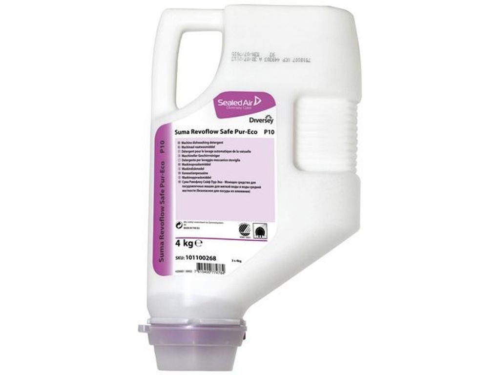 Suma Revoflow Safe Pur-Eco P10 är ett maskindiskmedel som är lågalkaliskt och aluminiumsäkert. Detta maskindiskmedel gör effektivt rent och löser upp beläggningar från fett, stärkelse och fastbränd mat. Produkten lämpar sig bäst med mjuka/medelhårda vatten. Perfekt för glas, porslin, plast, rostfritt och aluminium. Suma Revoflow Safe Pur Eco P10 doseras med Suma Revoflow-system som ger utmärkt och säkert resultat. Säkert, slutet system med unik förpackning, inget vatten i kontakt med pulver i kapseln. - Aluminiumsäker - Utseende: Vitt pulver - pH (1% lösning): 11,5 - Densitet (20°C): 0,98 - Svanen: Licensnummer 30800001