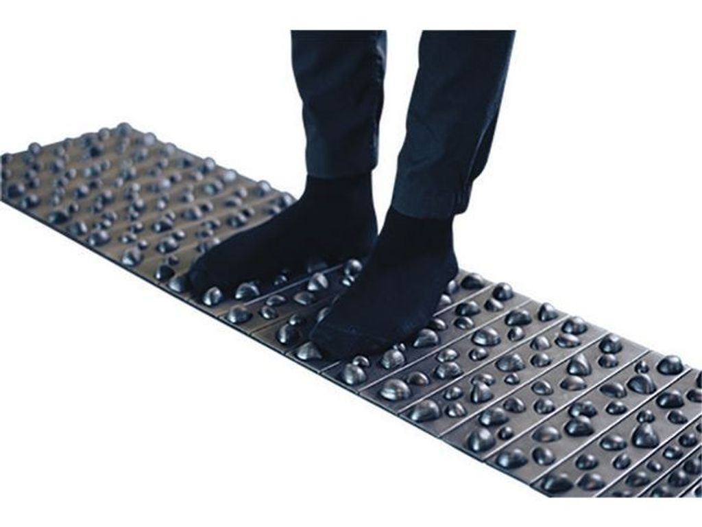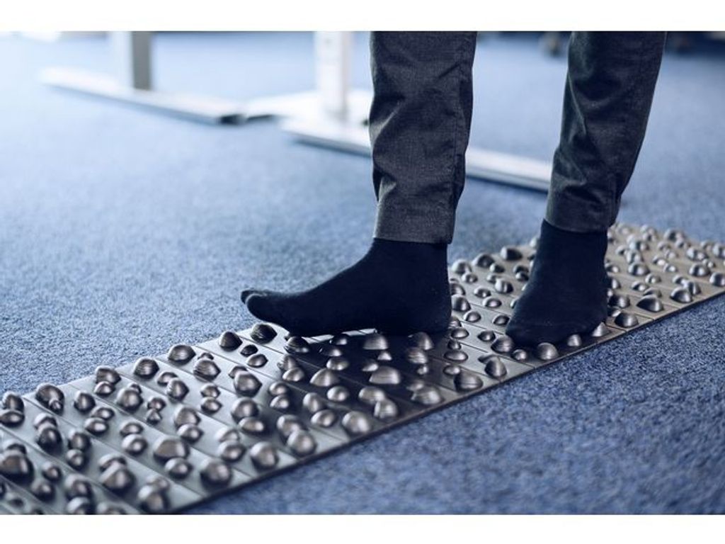 En massagematta ökar blodcirkulationen och energinivån i kroppen och kan användas både stående och sittande. JobOut Ståmatta Massage ger tryck på specifika delar av fötterna, likt zonterapi, vilket ger energi och stimulans till hela kroppen. Endast några minuters stående på massagemattan ökar blodcirkulationen, energinivån och ämnesomsättningen i din kropp, vilket kan minska smärta och stress. Massagemattan kan enkelt användas både stående och sittandes vid arbetsplatsen. - Material: EVA - Storlek: 120 x 31 cm