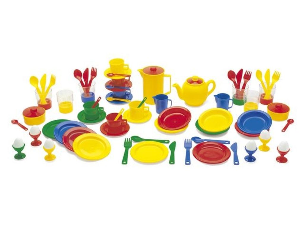 Stort matset med 72 delar Ett stort matset med 72 delar från danska Dantoys, det fungerar lika bra till middagen som till fikat. Setet är för 6 personer och innehåller bland annat tallrikar, bestick, glas, koppar och äggkoppar. - Material: Polyeten - Ålder: 2+ - Svanen: Licensnummer 595-001 Varning. Lämpar sig inte för barn under 3 år