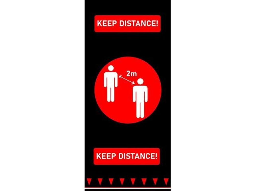 En matta som erbjuder en effektiv lösning på social distansering. De så kallade distansmattorna är en tydlig påminnelse om att hålla tillräckligt avstånd i butiker, på kontor etc. - Mått: 90x200cm - Färg: Röd/svart