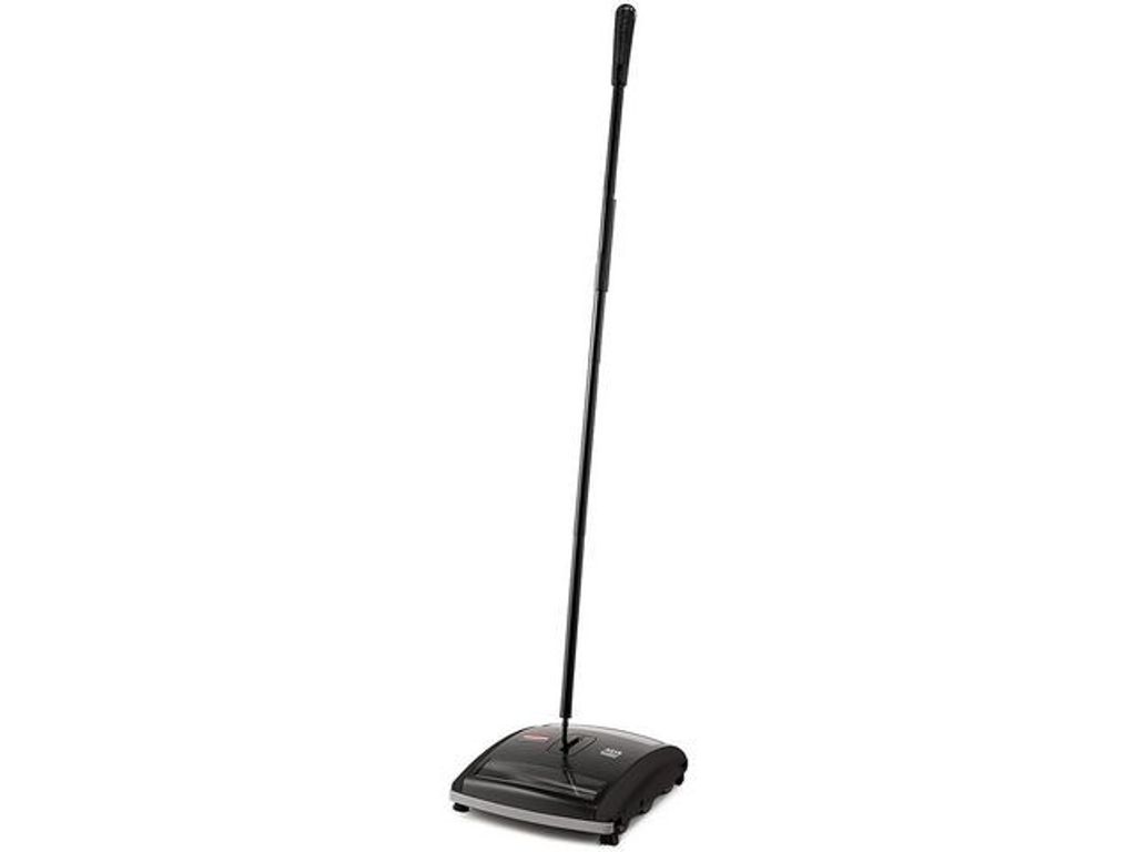 Borstlös golvsopare. Den mest mångsidiga golvsoparen i systemet, denna modellen har gummiblad istället för borstar och sopar upp damm och smuts från en mängd olika golvytor. Perfekt i exempelvis restaurangmiljörer. Tillverkad av slitstarkt galvaniserat stål och tålig ABS plast. Låg profil för enkel åtkomst runt och under möbler. Tonade fönster gör att du kan se när skräpbehållaren behöver tömmas. Dubbla skräpuppsamlare med one-touch öppning. Mjuka gummihjul glider lätt på mattor, vinyl, kakel, trä, och mer. Brett 19 cm munstycke.
