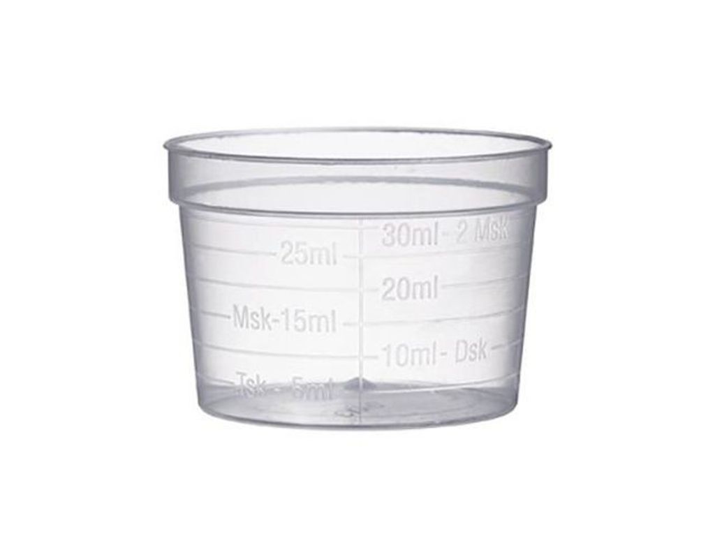 Graderad engångsbägare för medicin. Höjd 33 mm, diameter 48 mm. - Storlek: 33x48mm - Volym: 30ml