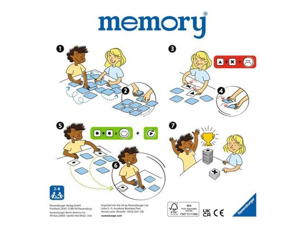 Memory är ett roligt sätt att träna igenkänning, logiskt tänkande, tålamod och öga/handkoordination. När du väljer rätt svårighetsgrad stärks ditt barns självförtroende och närminne samtidigt som han eller hon har roligt! - Tillverkad av kraftig kartong - Tillverkad i Europa - 72 brickor - För 2 till flera spelare - Från 3 år - FSC Certifierat