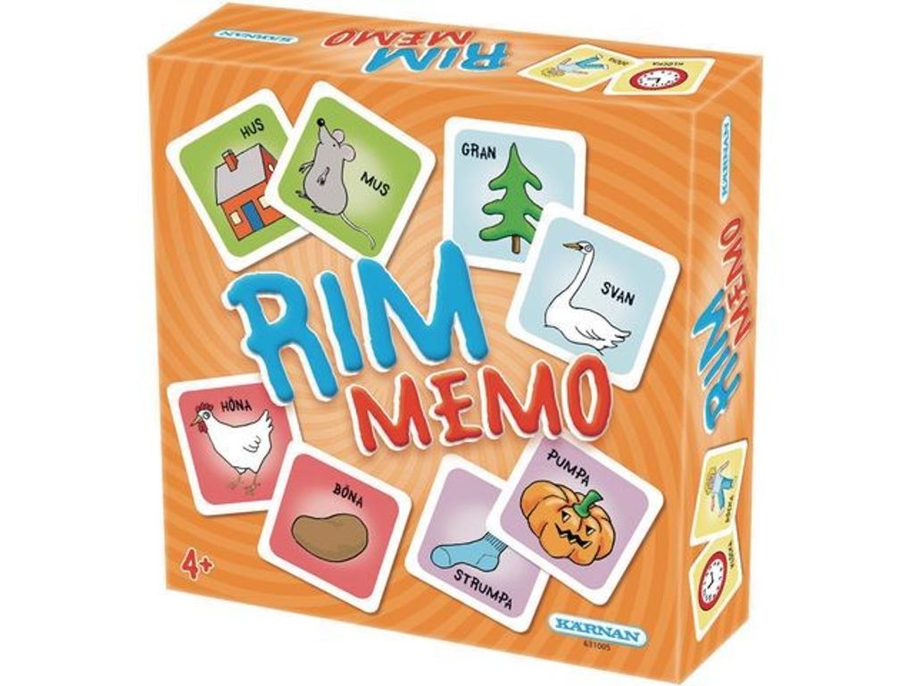 Memo med tecknade bilder. Matcha brickorna som rimmar med varandra, klocka med docka, eller pumpa med strumpa osv. Spelet bygger på den klassiska idén att samla bildpar, fast här i rim. Matcha bilderna som rimmar med varandra. Här kan barn och vuxna spela på samma villkor. Enkla regler och fina bilder gör att man kan spela om och om igen utan att tröttna. Att spela memo är roligt, lärorikt och tränar samtidigt minnet och bildsinnet - Antal spelare: 2-4 - Rekommenderad ålder: 4+