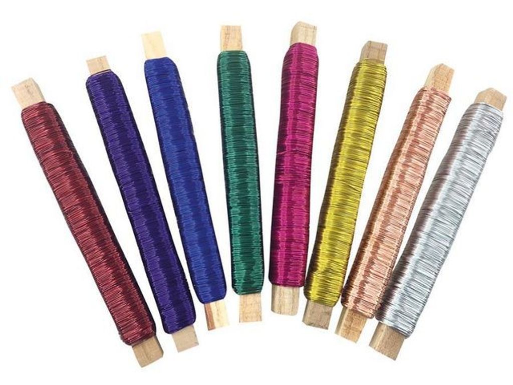 Passar utmärkt för pyssel och pynt. Metalltråd av hög kvalitet i åtta olika färger - röd, lila, blå, grön, cerise, guld, koppar och silver. - Antal: 8/FP - Längd: 50 m - Tjocklek: Ø 0,5 mm, - Färg: Röd, lila, blå, grön, ceris, guld, koppar och stål - Material: Stål