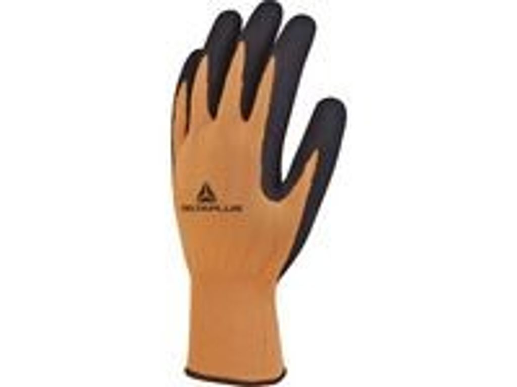 Arbetshandske DELTAPLUS VV733 är en stickad polyesterhandske med latexbeläggning på handflatan. 100 % polyester av hög kvalitet. Nylonstickade med latexbeläggning på handflatan och fingerspetsarna. Elastiska och med ventilerande material. 13 gauge-stickning. Passar för arbete inom bl a konstruktion/civilingenjör, hantverkare, lätt industri, logistik och lager, vindindustrin. - CE-certifierad - Godkänd enligt: EN420:2003+A1:2009, EN388:2003 (3, 1, 3, 1) - Material: Polyester - Material ytskikt: Latex - Typ av ytskikt: Beläggning handflata & fingrar - Klassificering : Kategori II - Gauge-värde: Gauge 13 - Längd: 30 cm - Färg: Neonorange, Svart - Storlek: