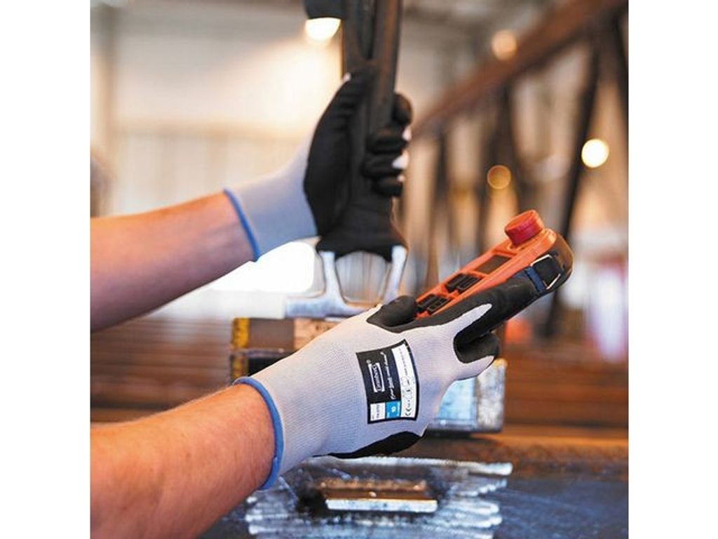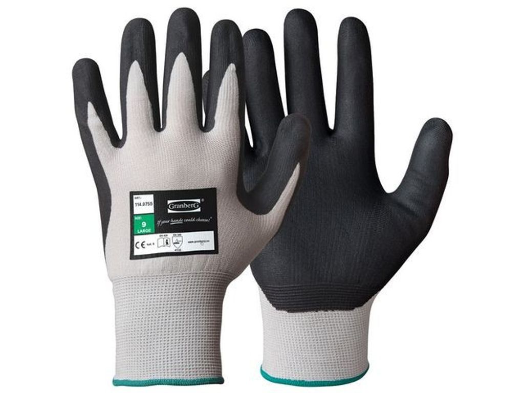 Montagehandske lämplig för detaljmontering, inspektion och arbeten med små delar etc. Passar även vid lätt till medeltungt arbete inom transport, underhåll, industri, anläggning och lager. Montagehandske i nylon med en niltrilskumbeläggning vilket gör dem mycket slitstarka. Denna tätslutande modell är bekväm, smidig och ger ett bra grepp samtidigt som den har en bra andningsförmåga. - CE-certifierad - Godkänd enligt: EN 388:2016+A1:2018, EN 407:2020, EN ISO 21420:2020, Oeko-tex - Skyddsklass: II - Foder: nylon - Doppningsmaterial: nitril - Grepp: torrgrepp, våtgrepp - Passform: tight - Färg: svart, grå - Storlek: 10