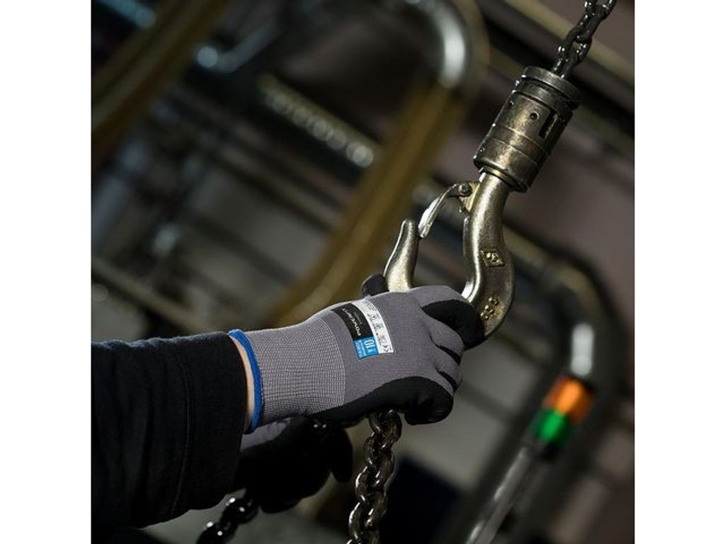 Montagehandskar lämpliga för lätt till medeltungt arbete inom montering, transport, underhåll, industri, anläggning och lager. Med utmärkt nötningsmotstånd kombinerat med fingerkänsla och ventilerande egenskaper. Nitrilskumbeläggningen stöter ifrån sig vatten och olja och frilägger greppytan för ett enastående torr- våt- och oljegrepp. Skyddar mot kontaktvärme upp till 100°C i 15 sekunder. Sanitized®-behandlade för att förhindra bakterietillväxt och för att ge en fräsch känsla. - Godkända enligt: EN388:2016 4131X, EN 407:2004 X1XXXX - OEKO-TEX® 100-godkända - CE-märkta - Skyddskategori: II - Material: ytterhand: nylon - Material innerhand: nitril - Touch screen kompatibla - Storlek: 11