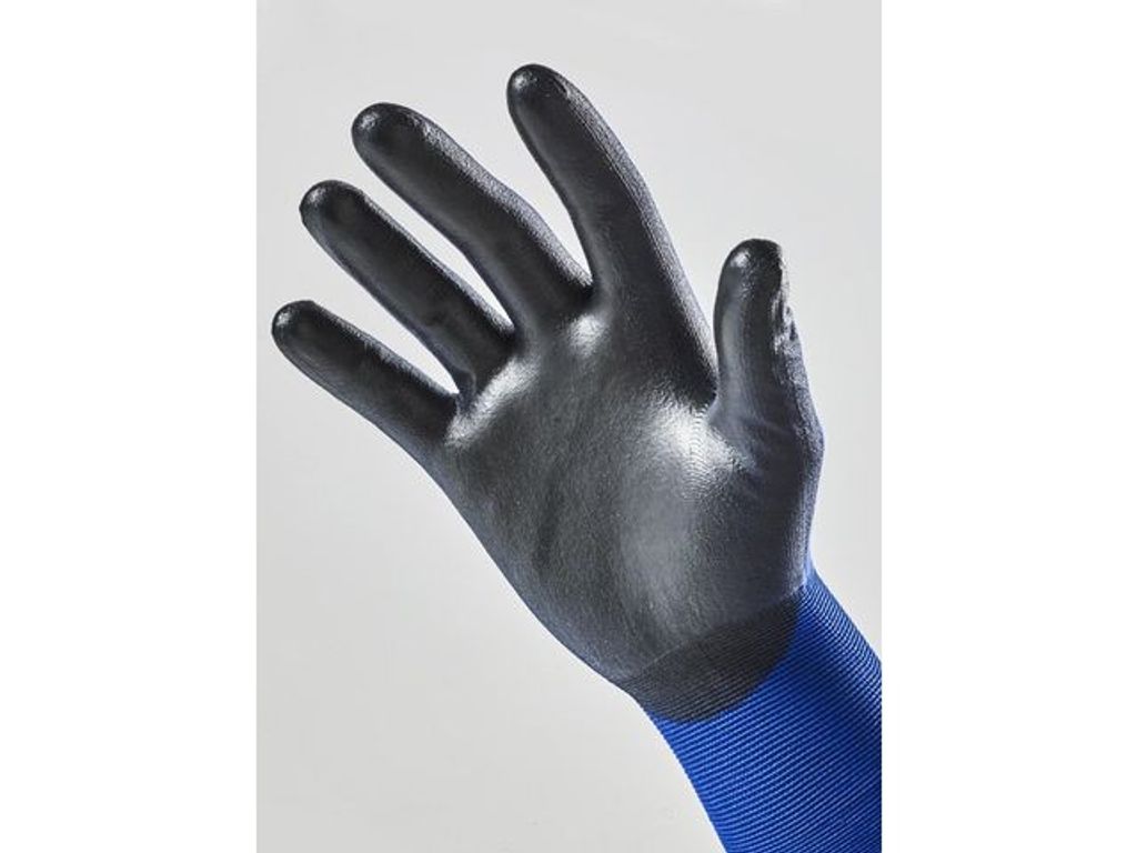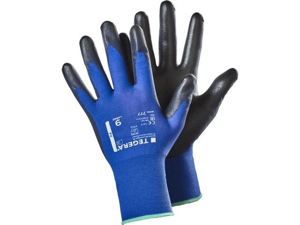 Arbetshandske TEGERA 777 är en tunn precisionshandske med slät doppning. En mycket smidig handske med utmärkt fingertoppskänsla. TEGERA 777 har en ventilerande ovanhand samt vatten- och oljeavvisande innerhand. Tunn PU-doppning i handflatan ger bra grepp och skydd mot nötningsskador. Mörkblå och svart färg som döljer smuts för ökad produktlivslängd. Handsken hjälper till att motverka nötningsskador, blåsor, skrubbsår, kontakt med smuts, uttorkning mm. Passar utmärkt att använda i bl a torra miljöer, oljiga miljöer och smutsiga miljöer. - CE-certifierad - Godkänd enligt: EN 420:2003+A1:2009, EN 388:2016 3111X - Kategori: Cat. II - Doppning: Handflatedoppad - Doppningsmaterial: PU - Kragmodell: Rullade kanter - Invändigt material: Nylon - Yttermaterial: Polyuretan - Färg: Blå, Svart - Längd: 22-27 cm - Storlek: 8