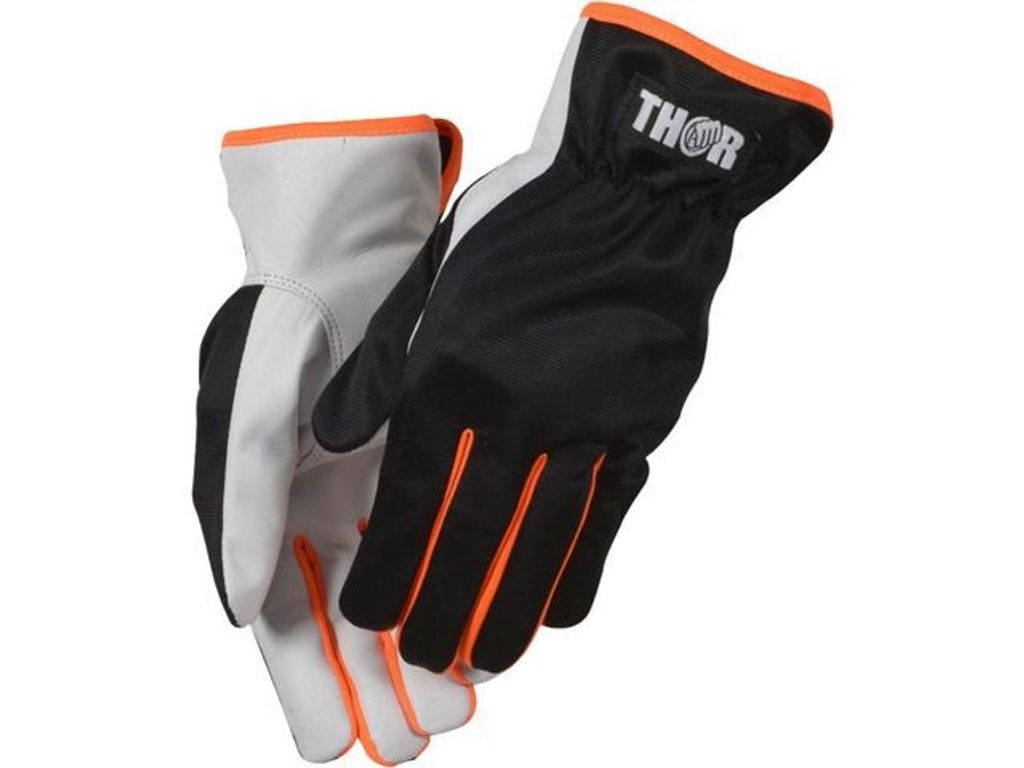 Beskrivning av Montagehandske THOR Teknik 3132 10 Bra slitstark handske som är tillverkad i getskinn och polyester, med insydd resår. Handsken är ofodrad och har bra passform.