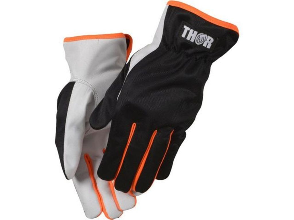 Beskrivning av Montagehandske THOR Teknik 3132 12 Bra slitstark handske som är tillverkad i getskinn och polyester, med insydd resår. Handsken är ofodrad och har bra passform.