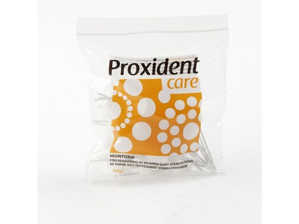 Proxident muntork används för rengöring av munhålan samt för att fukta och smörja torra och irriterade munslemhinnor. Är lämplig för munvård som utförs av anhörig eller sjukvårdspersonal. Kan användas tillsammans med Klorhexidin enligt tandvårdspersonalens anvisningar. För engångsbruk.