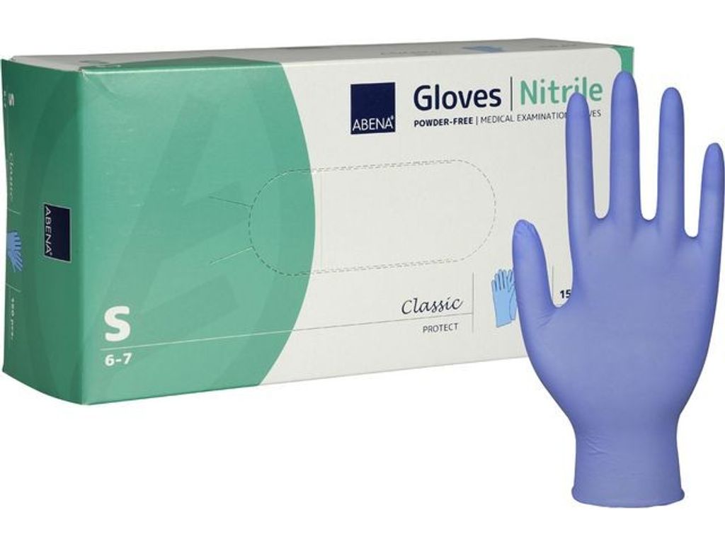 Beskrivning av Nitrilhandske puderfri blå S 150/fp