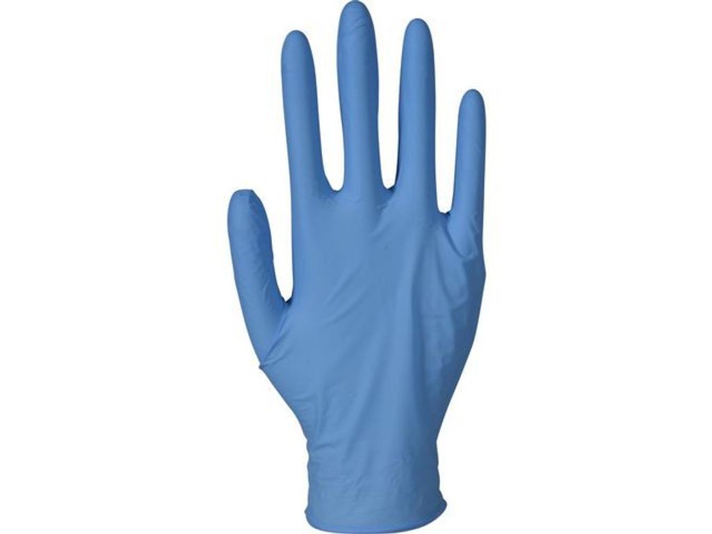 Puderfri nitrilhandske för engångsbruk. Godkänd för hantering av livsmedel. Elastisk undersökningshandske med ruggad ytstruktur på fingertopparna. Anpassar sig efter handens form under användning och inte stör användarens fingertoppskänsla. Kan användas för många olika uppgifter och ämnen, t.ex. rengöring, vård, mathantering, laboratorium, läkemedelshantering, cytostatika och hormonkrämer. Innehåller inga latexproteiner och kan därför användas vid latexallergi. Kan även användas med livsmedel med hög fetthalt så som fet fisk. - Godkända enligt: EN 374-1:2016 Type B KPT, EN 374-5:2016 VIRUS, EN 420, EN 455 - AQL: 1.5 - Skyddskategori: III - Tjocklek: 0,08 +/- 0,02mm - Material: nitril - Färg: blå - Längd: 24cm - Bredd: 7,6cm - Storlek: S - Livsmedelsgodkänd - CE-certifierad - Puderfri - Latexfri