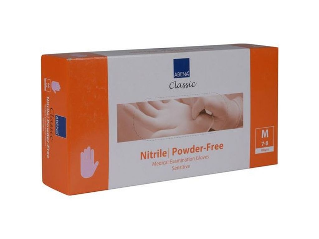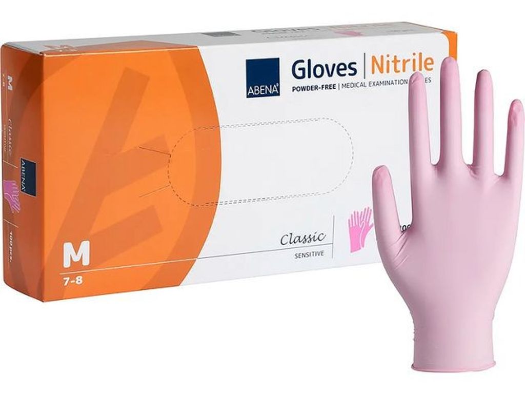 Beskrivning av Nitrilhandske puderfri rosa M 100/fp